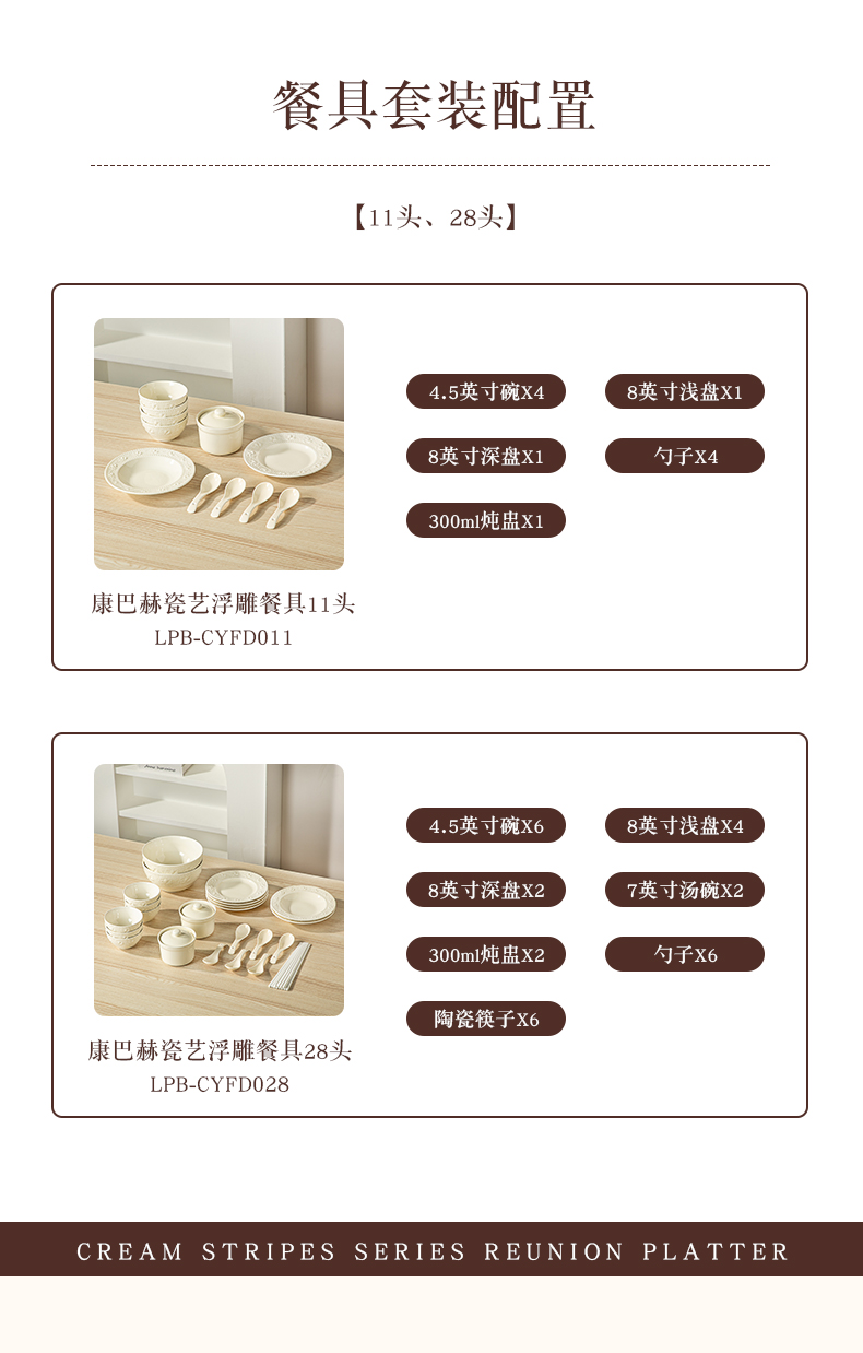 康巴赫瓷藝浮雕餐具28頭LPB-CYFD028