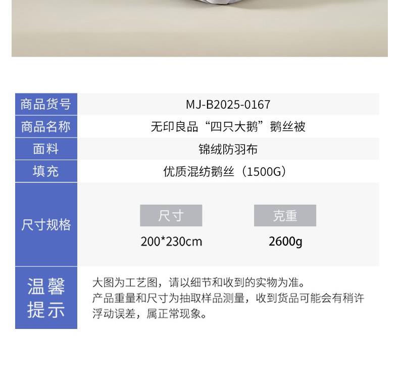 無印良品“四只大鵝”鵝絲被MJ-B2025-0167 無印良品“四只大鵝”鵝絲被MJ-B2025-0167