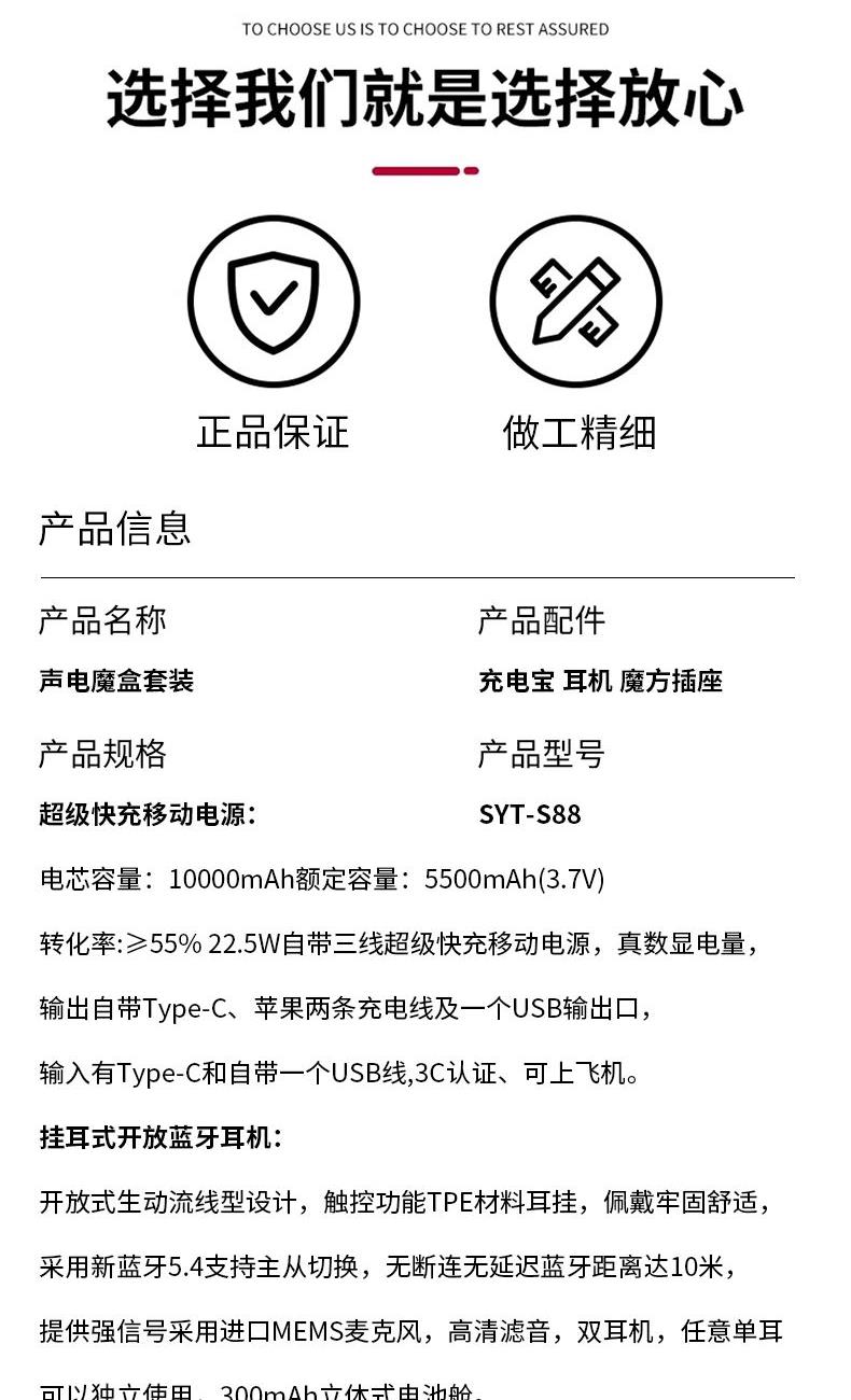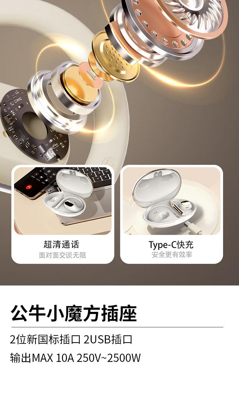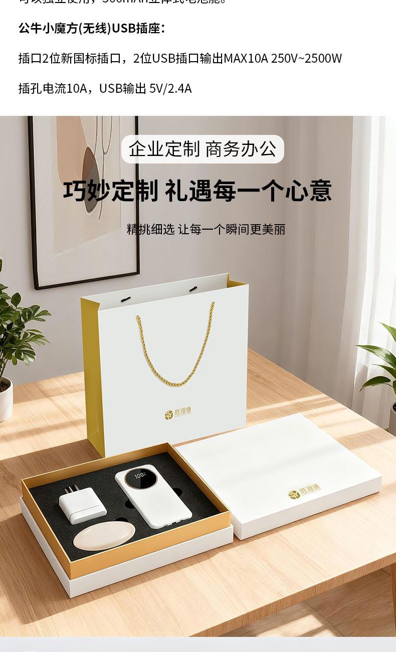 公牛小魔方(無線)USB插座+勝源通超級快充移動電源 產(chǎn)品重量:687g 公牛小魔方(無線)USB插座: 插口2位新國標(biāo)插口,2位USB插口,立體集成結(jié)構(gòu)、小巧便攜、自動分流、微動開關(guān)、五重保護(hù) 超級快充移動電源: 電芯容量:10000mAh自帶三線3C認(rèn)證超級快充 掛耳式開放藍(lán)牙耳機(jī): 開放式生動流線型設(shè)計,觸控功能TPE材料耳掛,佩戴牢固舒適