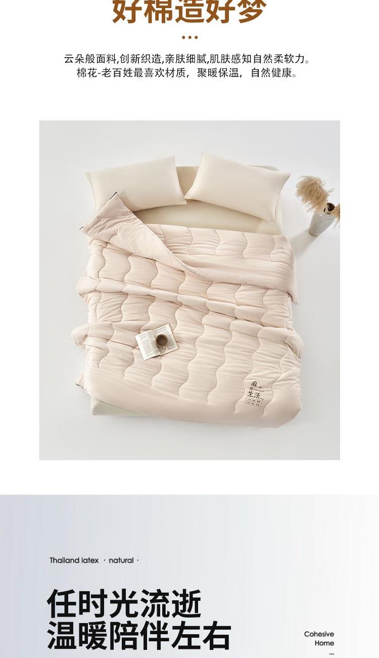 規(guī) 格:200×230(±2)cm 克 重:2500g 面 料:雪紡棉麻 填 充:棉花(1500g) 雪紡棉麻面料,創(chuàng)新織造,棉的親膚,麻的透氣,肌膚感知自然柔軟力。 棉花-老百姓喜歡材質(zhì),聚暖保溫,自然健康。 高品質(zhì)、高材質(zhì)、高標(biāo)準(zhǔn),一款對生活高度負責(zé)的產(chǎn)品