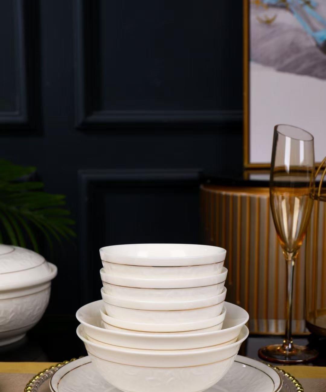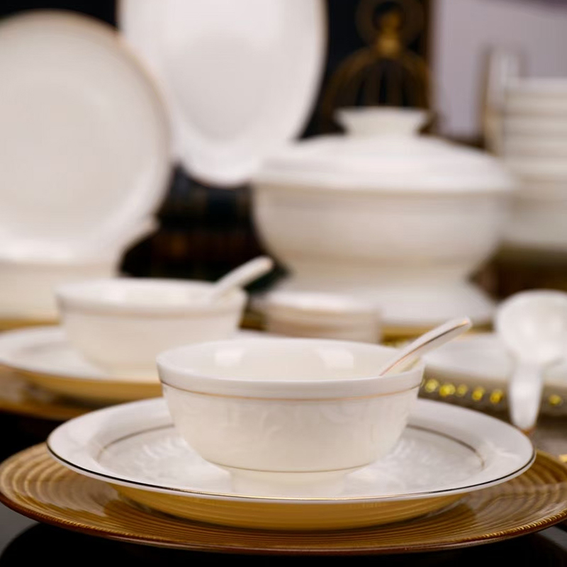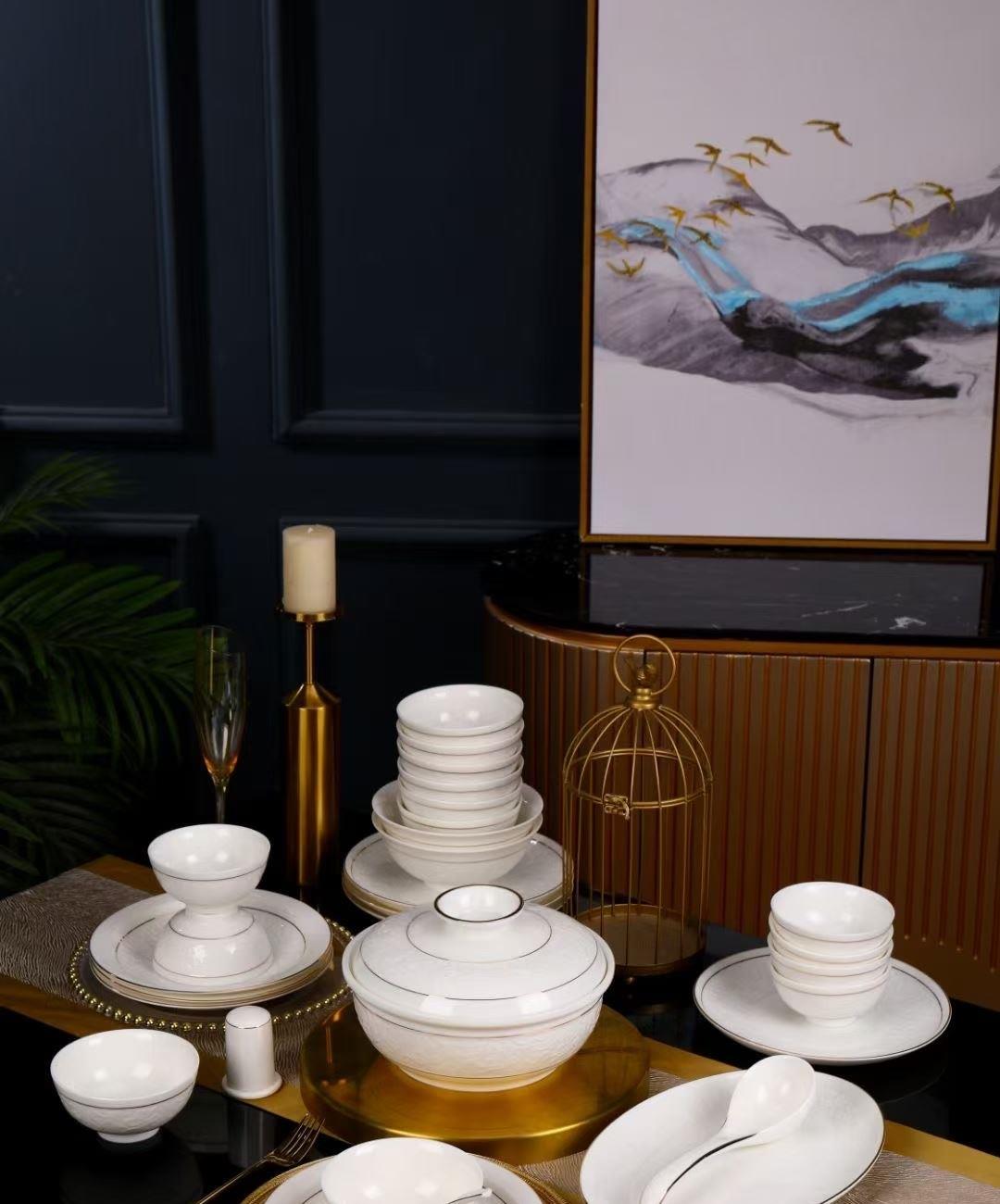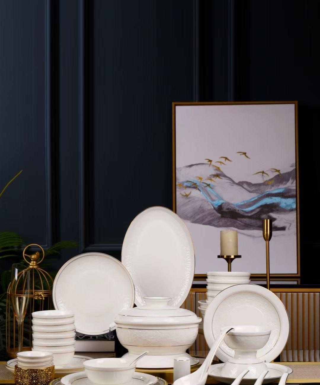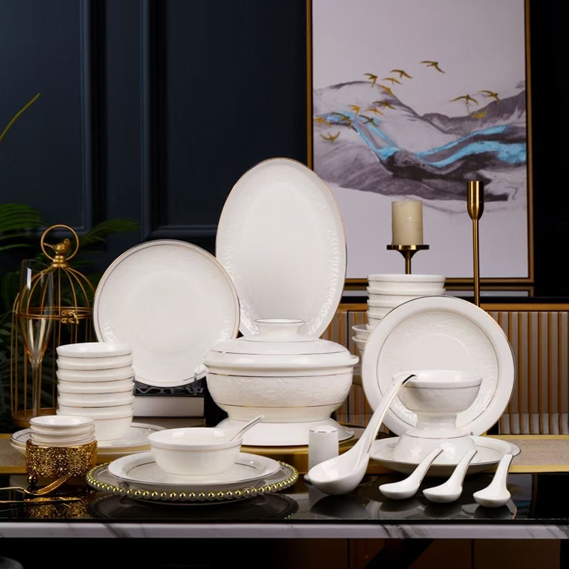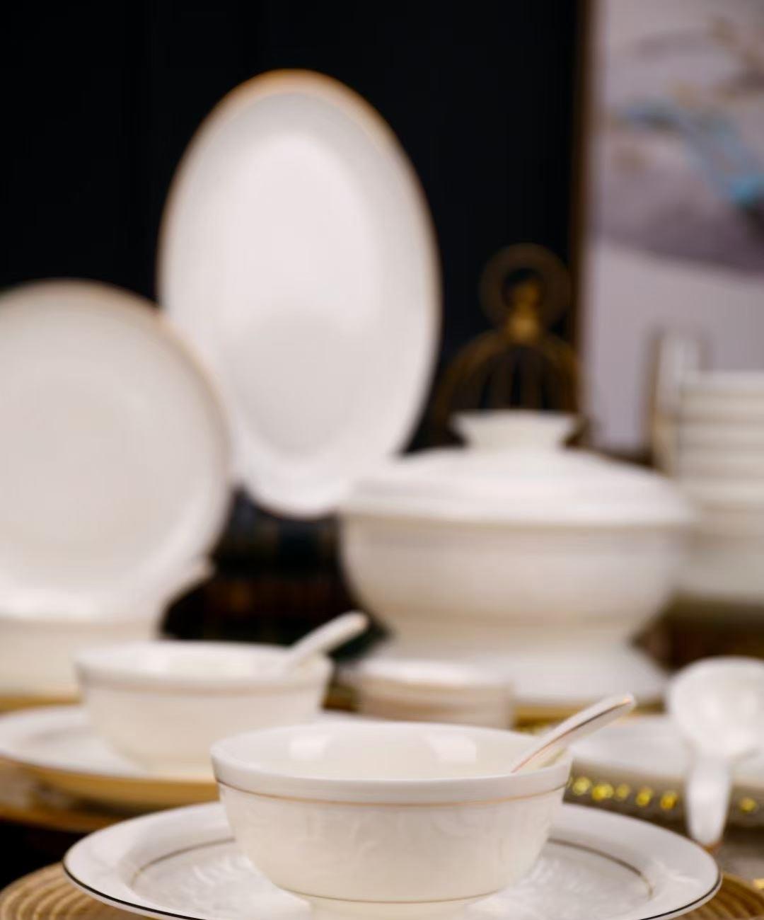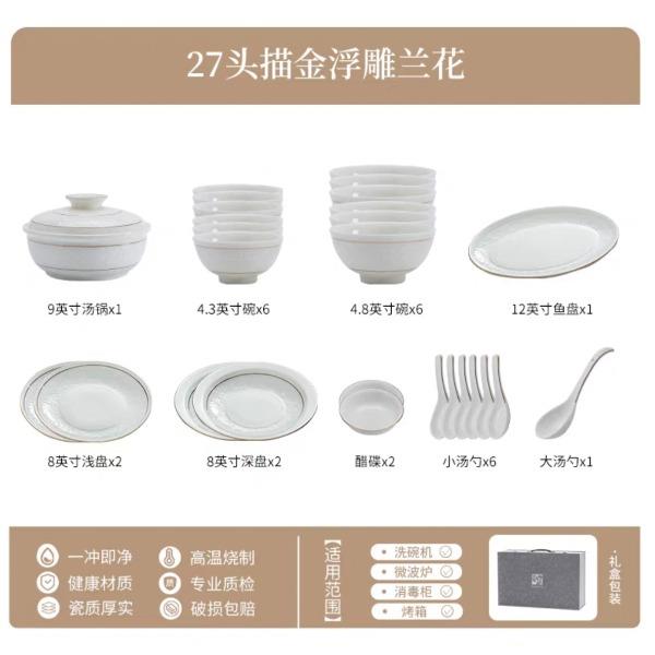 尾橋下窯羊脂玉瓷浮雕玉蘭27頭餐具套裝白瓷描金年會(huì)節(jié)日伴手禮 尾橋下窯羊脂玉瓷浮雕玉蘭27頭餐具套裝白瓷描金年會(huì)節(jié)日伴手禮