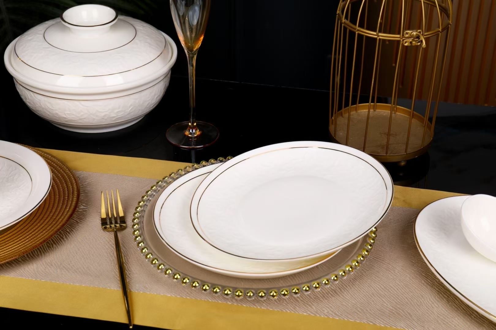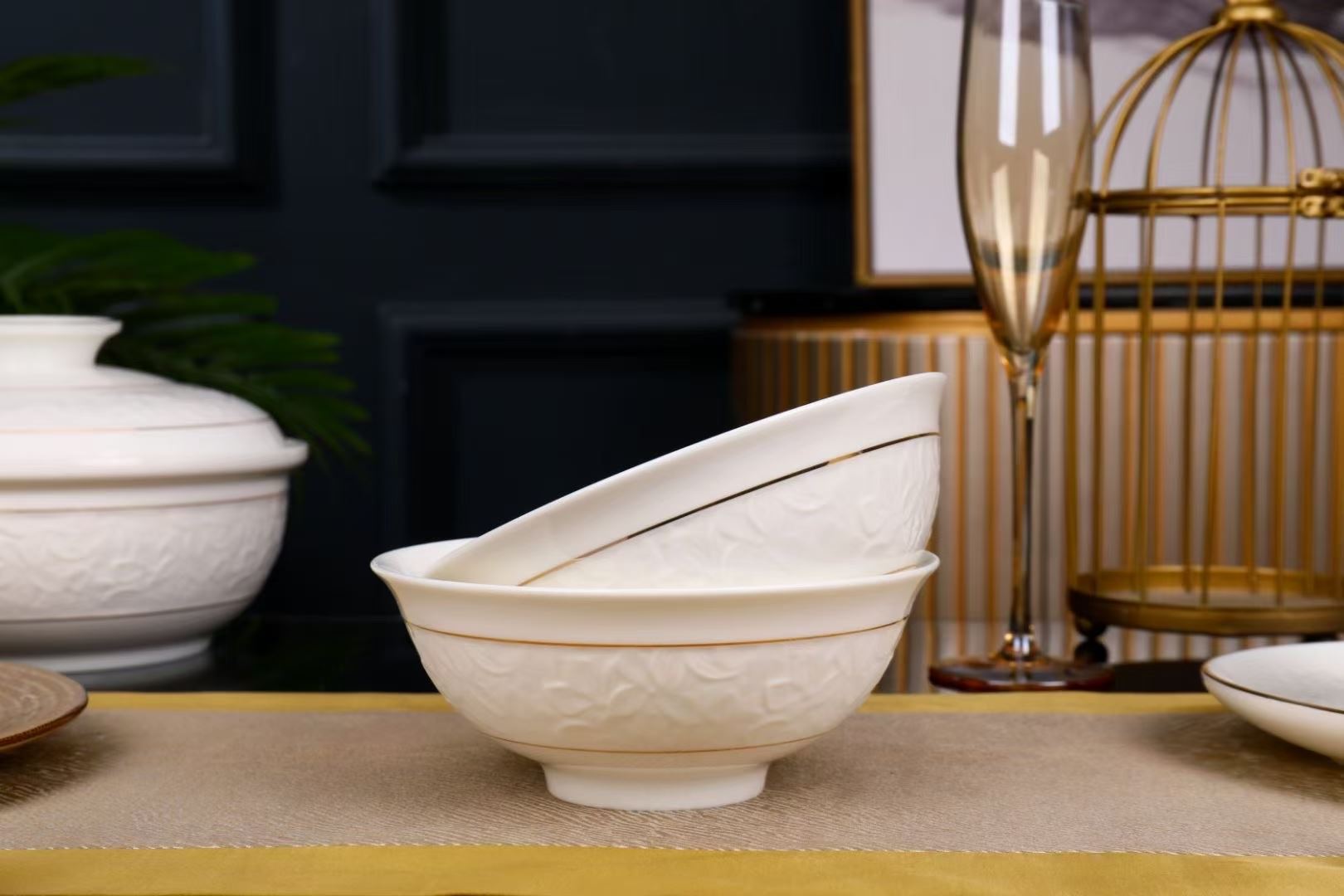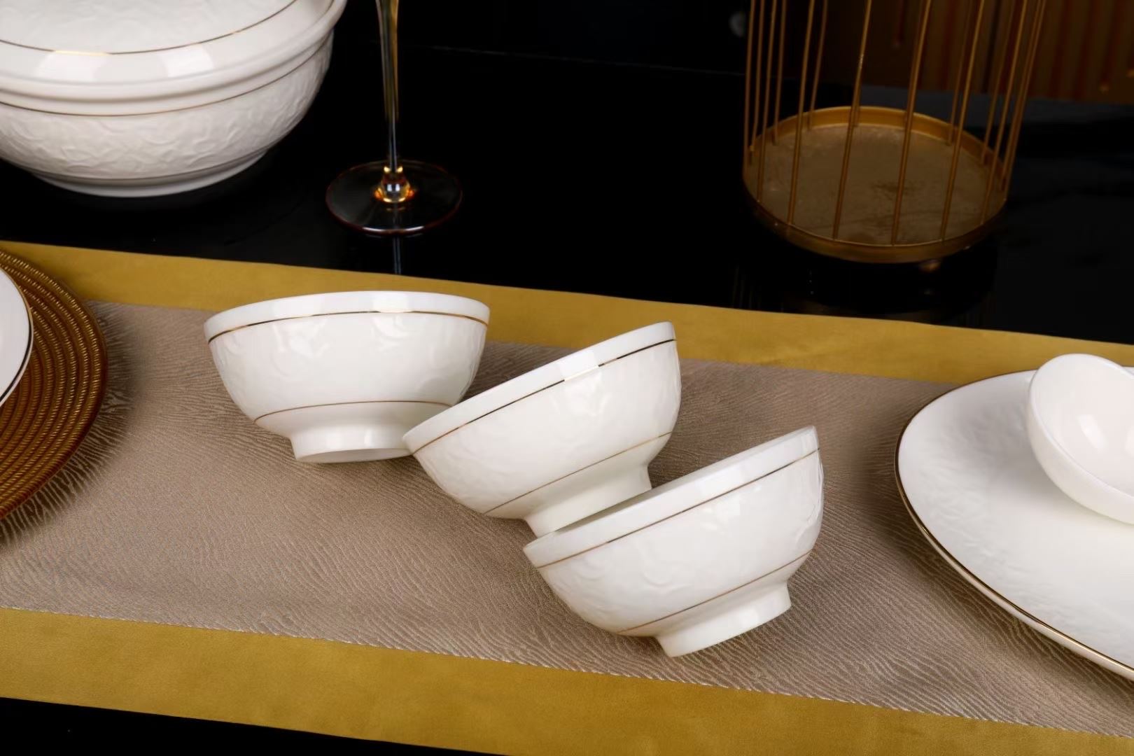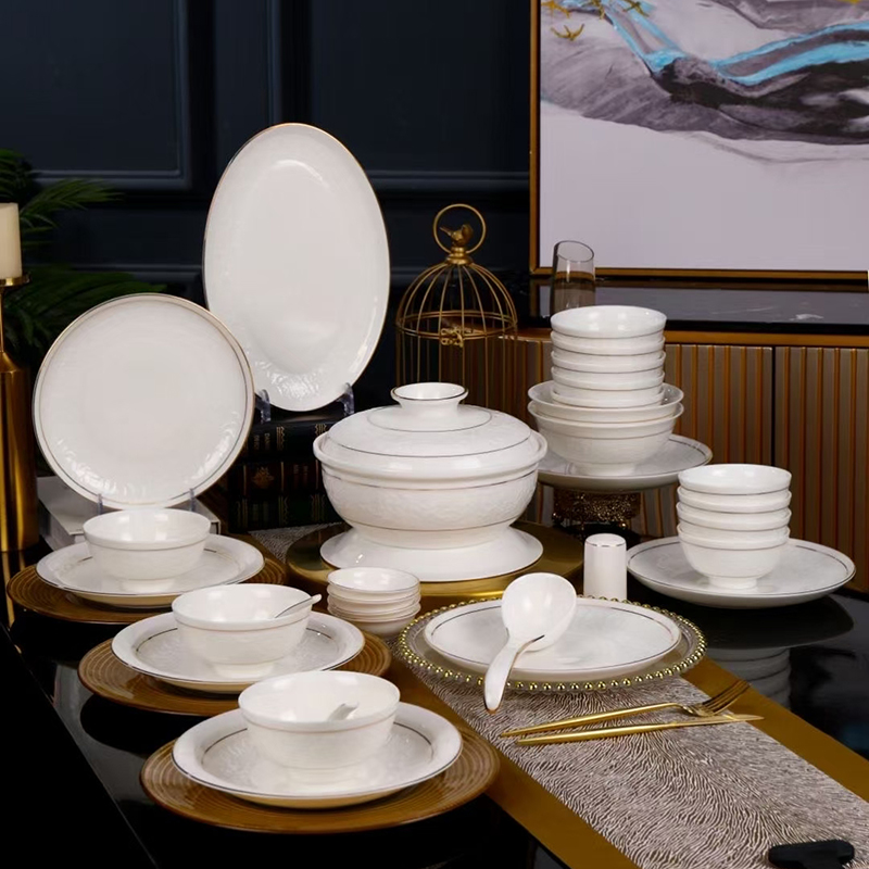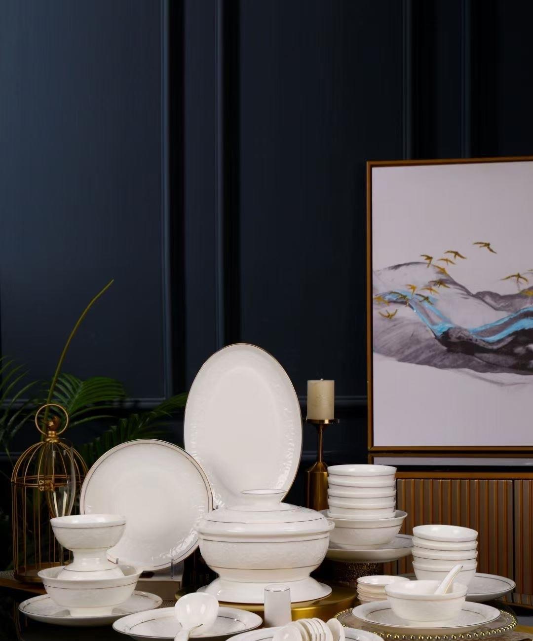 尾橋下窯羊脂玉瓷浮雕玉蘭27頭餐具套裝白瓷描金年會(huì)節(jié)日伴手禮 尾橋下窯羊脂玉瓷浮雕玉蘭27頭餐具套裝白瓷描金年會(huì)節(jié)日伴手禮