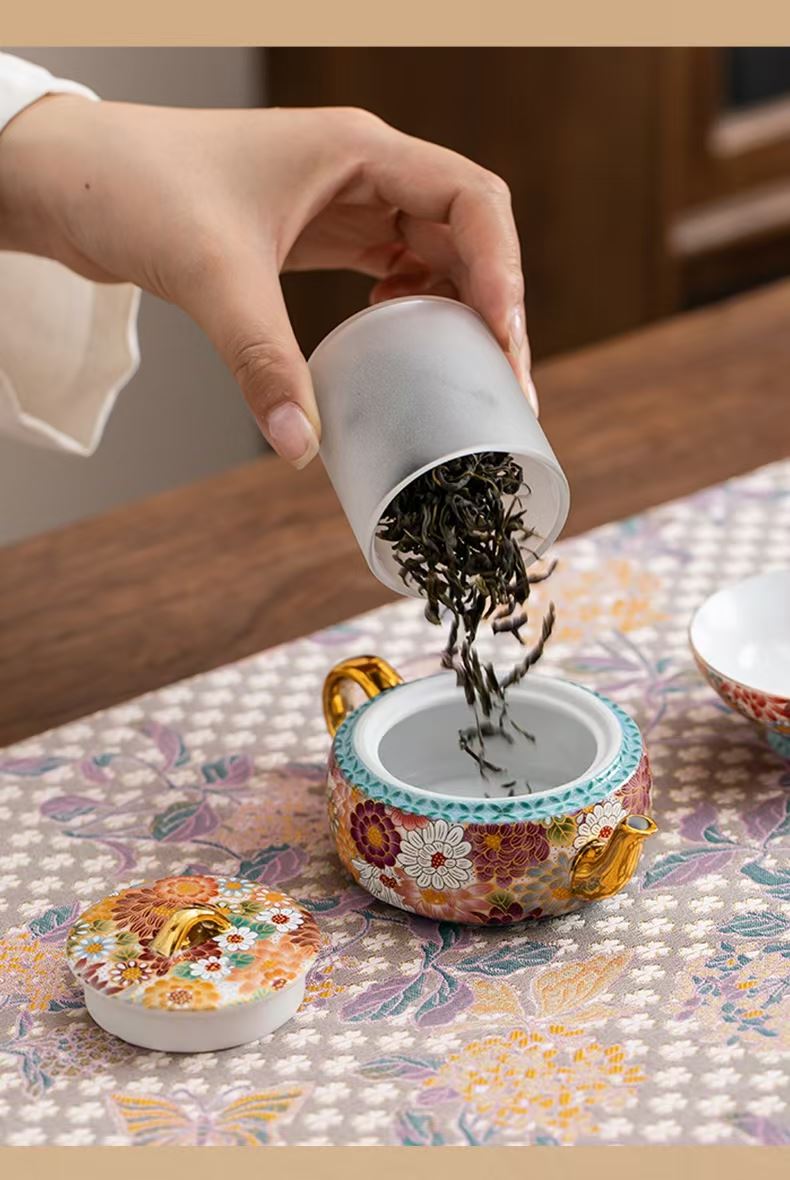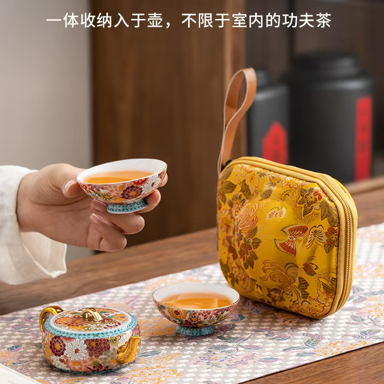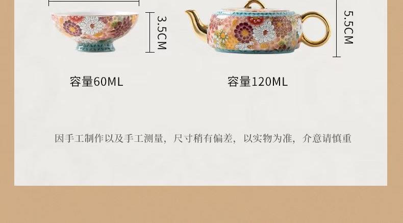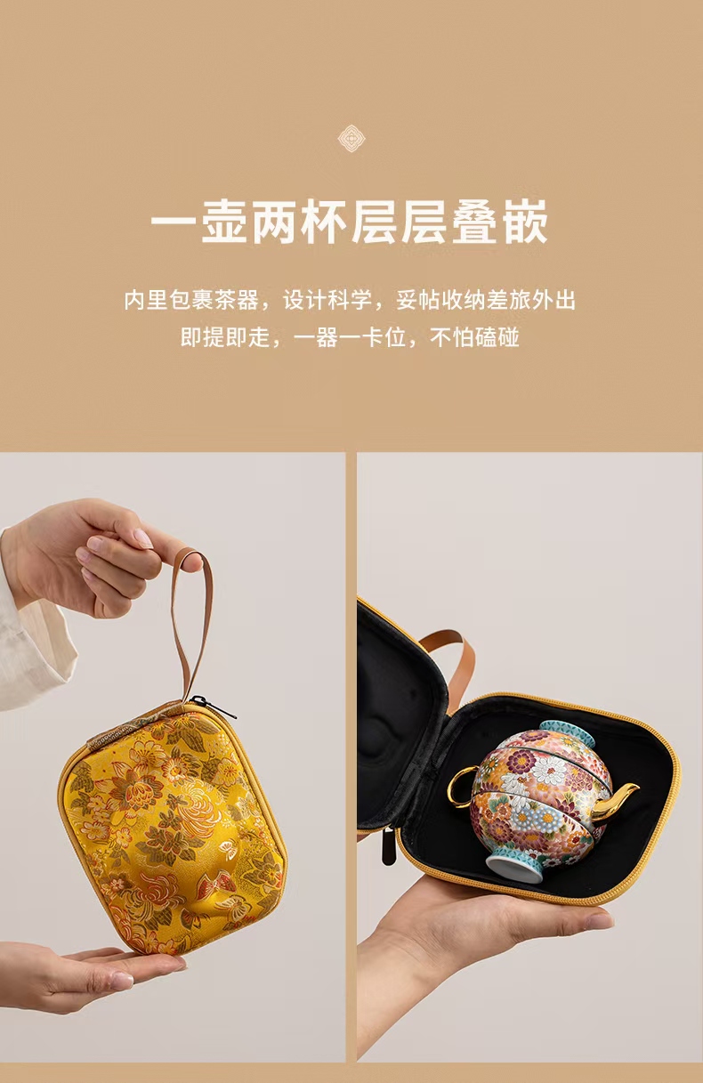 配置:茶壺*1,茶杯*2, 尺寸:茶壺12.5*5.5cm 容量120ml, 茶杯7.5*3.5cm 容量60ml, 便攜包:12.5*15*8.5cm。