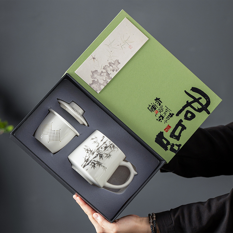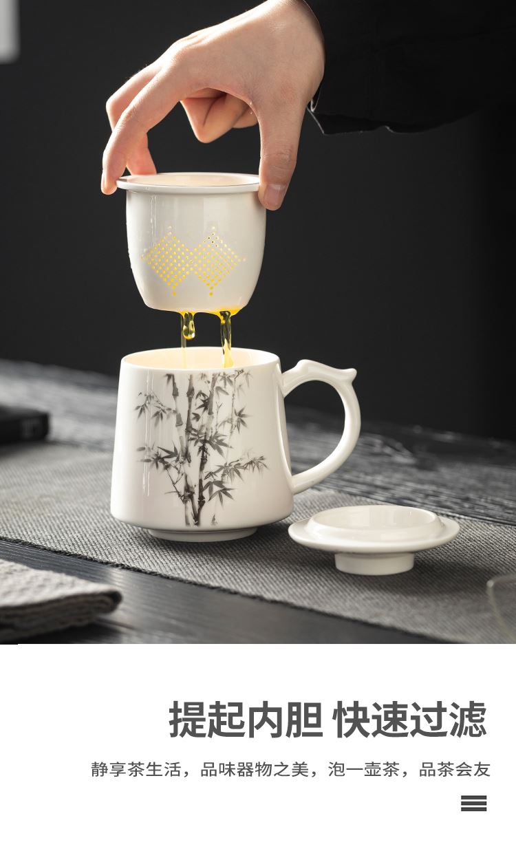 云博陶瓷節(jié)節(jié)高升辦公杯過濾水杯馬克杯茶水分離杯羊脂玉瓷伴手禮