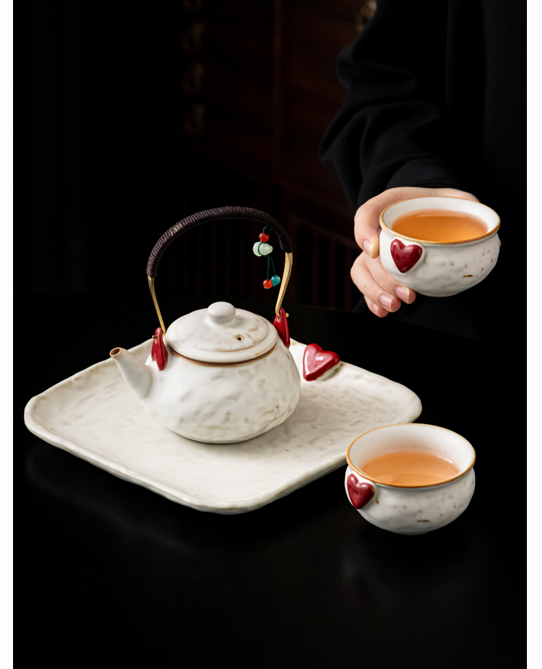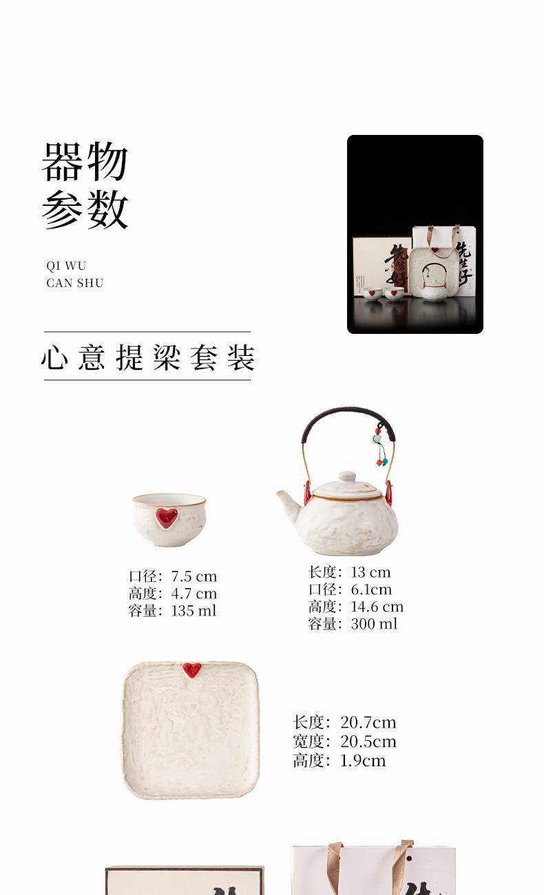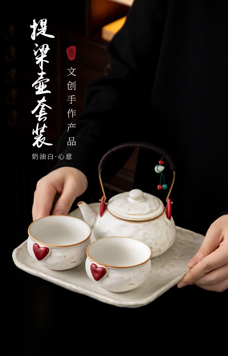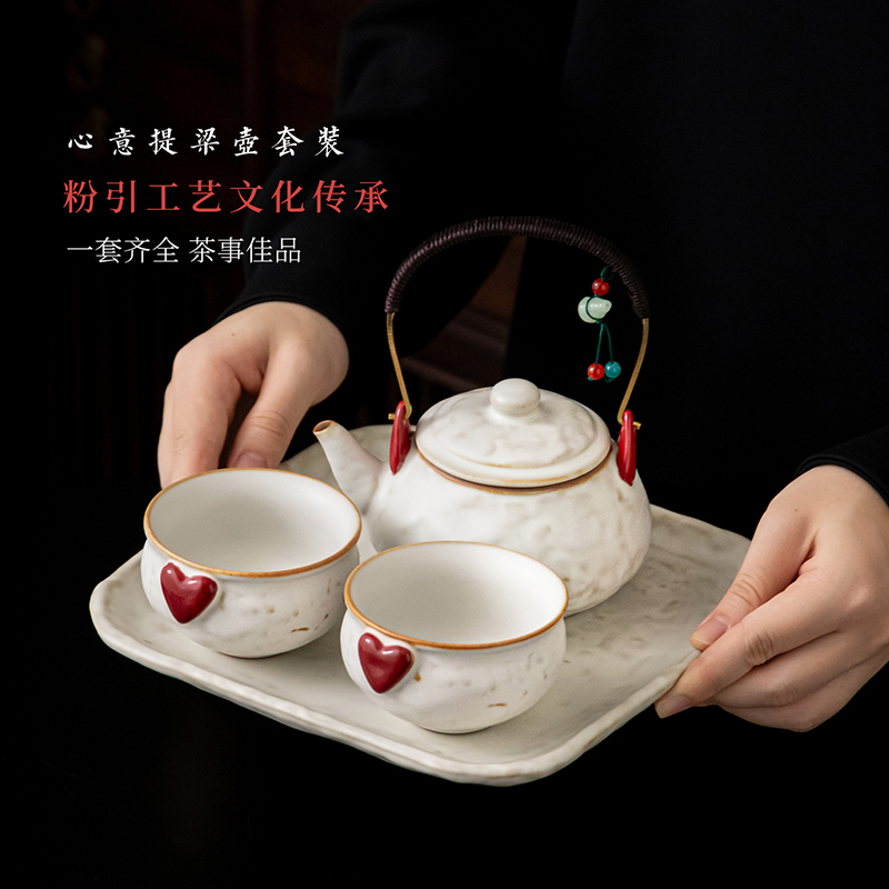 尾橋下窯復(fù)古粉引提梁/抓壺心意茶禮小套裝開業(yè)伴手禮年會(huì)贈(zèng)品