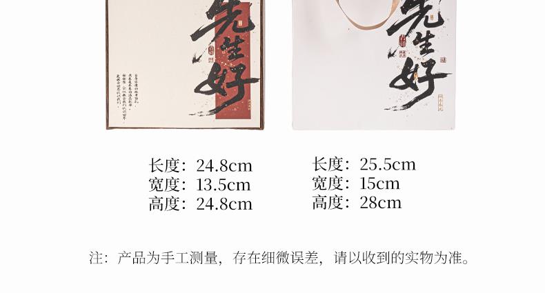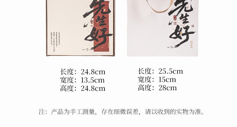 配置:壺*1,茶杯*2,干泡盤*1. 尺寸:提梁壺13*6.1*14.6cm 容量300ml, 手抓壺9.9*5.9*8.6cm 容量235ml, 茶杯7.5*4.7cm 容量135ml, 干泡盤20.*20.5*1.9cm . 禮盒:24.8*13.5*24.8cm。