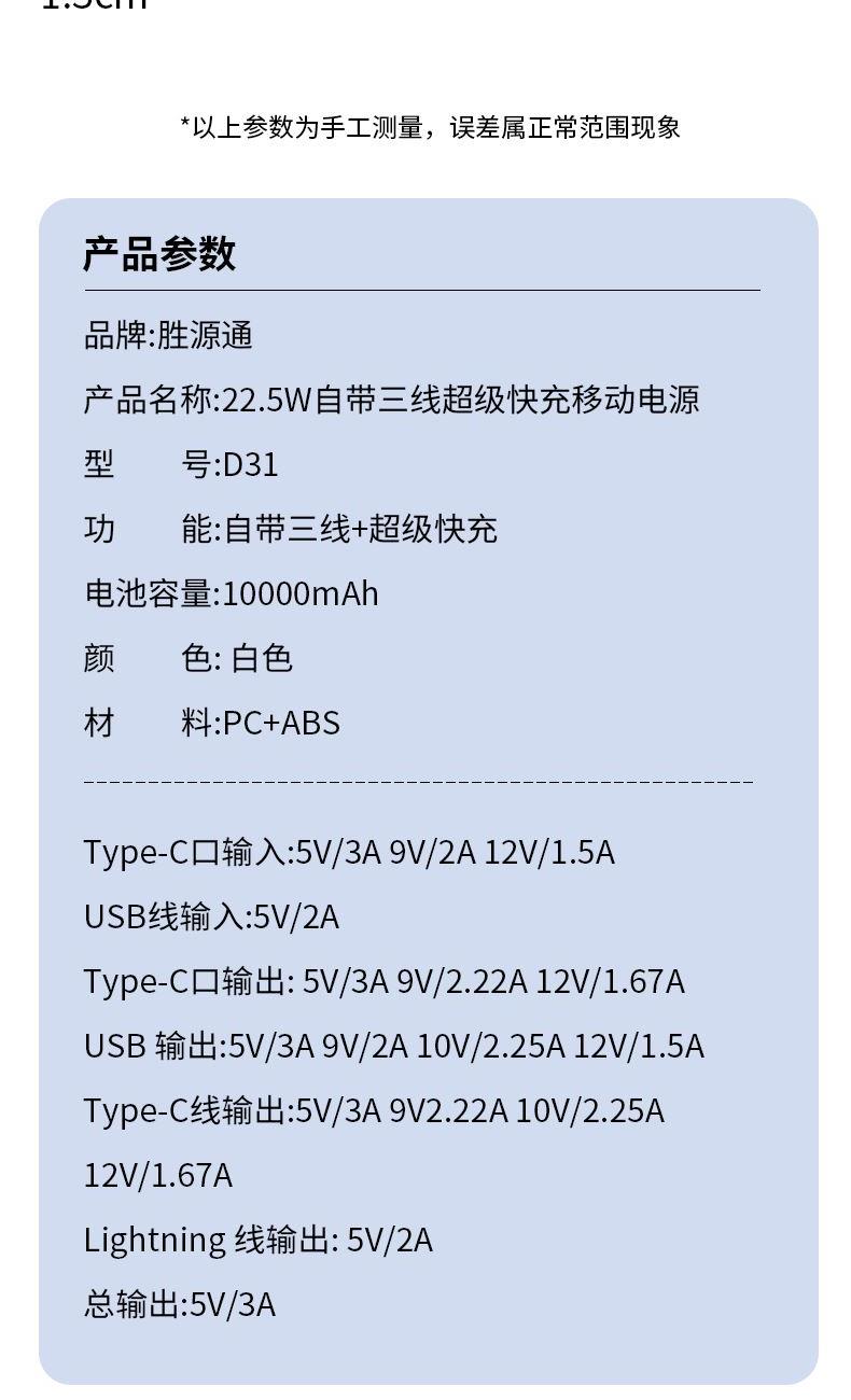 勝源通22.5W自帶三線超級(jí)快充移動(dòng)電源D31 勝源通22.5W自帶三線超級(jí)快充移動(dòng)電源D31