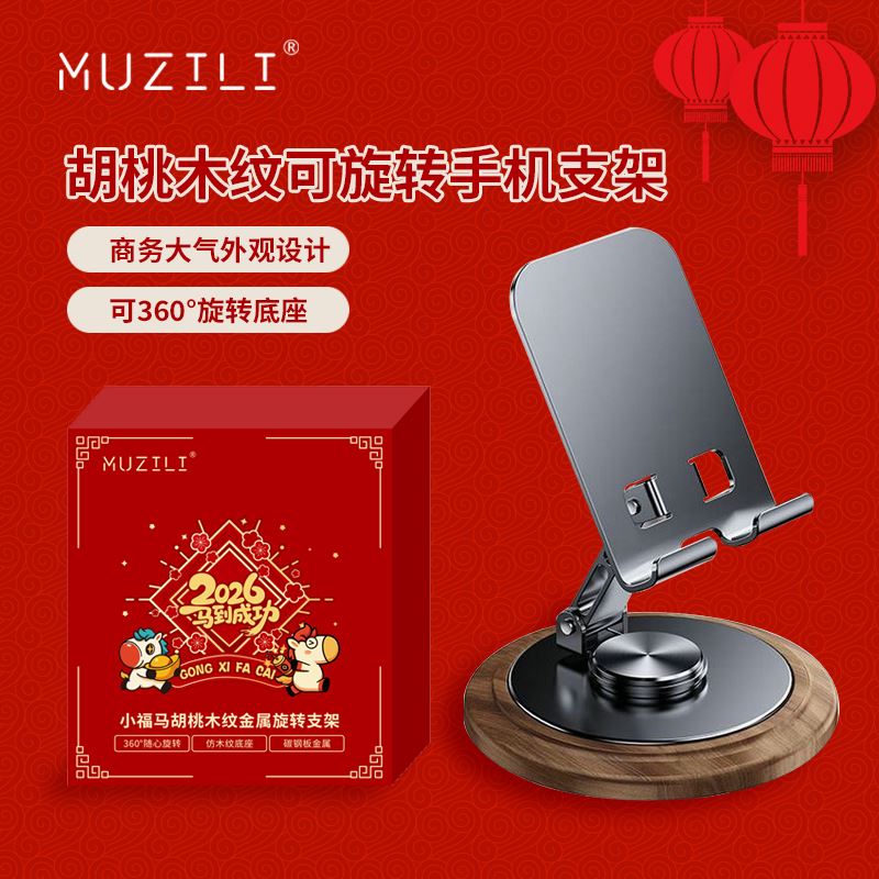 MUZILI·小福馬胡桃木紋手機(jī)平板桌面旋轉(zhuǎn)支架HD1 禮品已成功加入PPT!