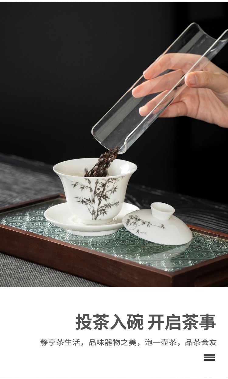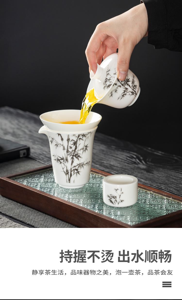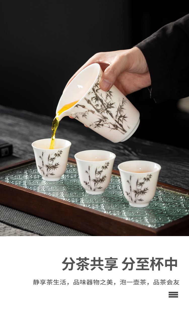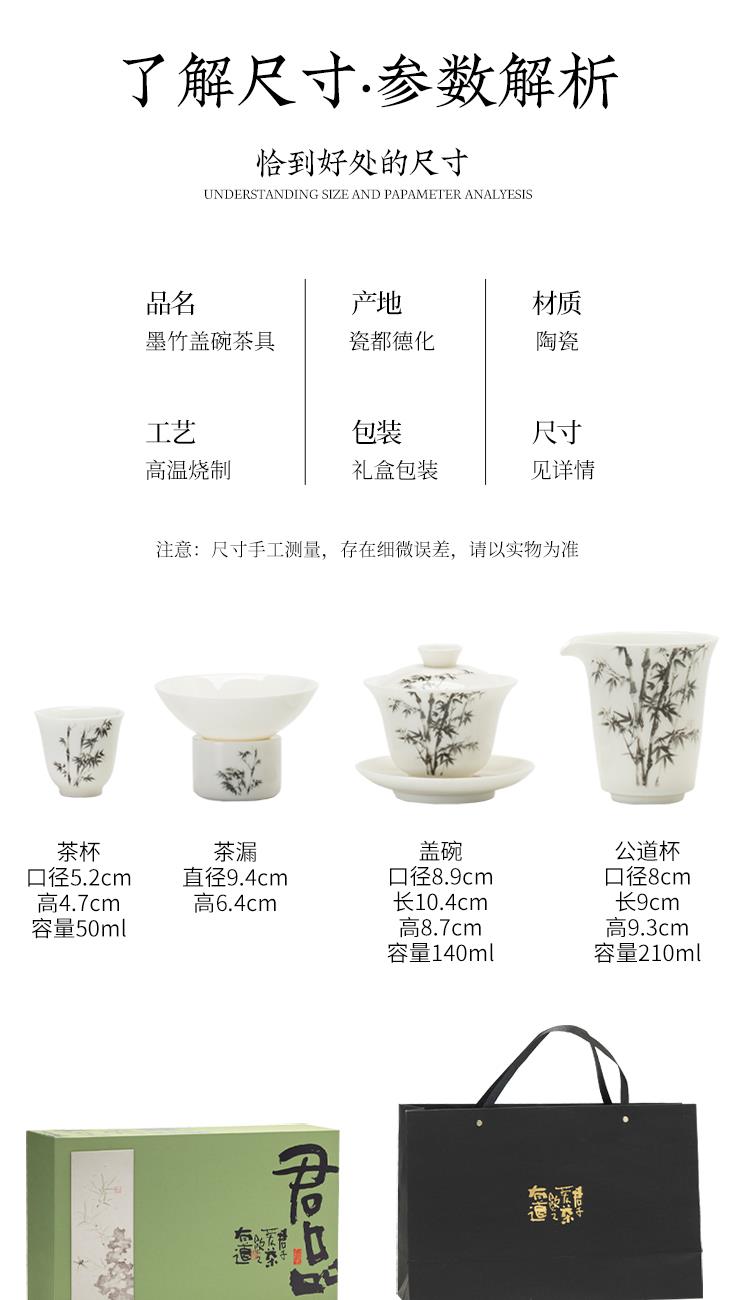 配置:蓋碗*1 品茗杯*6 公道杯*1 茶漏*1 禮盒*1手提袋*1 材質(zhì):羊脂玉瓷 禮盒尺寸:40.3cm*25cm*12cm 產(chǎn)品尺寸:蓋碗:145ml 品茗杯:50ml 茶海 230ml